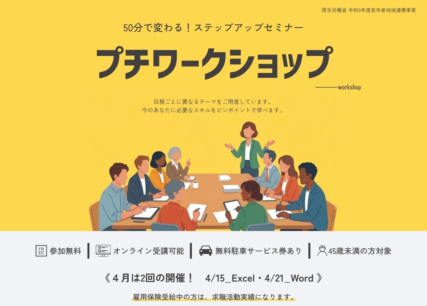 15歳から44歳までの方を対象とした就職支援施設です